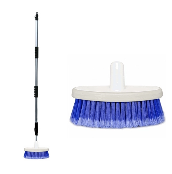 Deze stevige 123 wasborstel heeft een telescopische, waterdoorlatende steel met een lengte van 3x140 cm. Op het handgreep is een kraantje gemonteerd waarmee het water afgesloten kan worden.