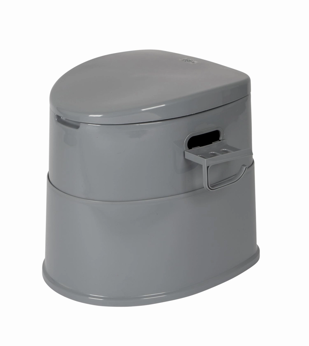 Een modern draagbaar toilet. Dit hogere toilet beschikt over een losse en makkelijk uitneembare emmer zodat deze gemakkelijk te legen is. Voorzien van een soft closure systeem voor het zacht dichtklappen van de deksel. Daarnaast is het draagbare toilet voorzien van een handgreep, een bril, een deksel en een rekje met hendel waar je de wc-rol aan kunt hangen en bijvoorbeeld een luchtverfrisser op kunt zetten. Het toilet bestaat uit twee losse delen die je uit elkaar kunt halen waardoor het compact op te bergen is en compacter mee te nemen.