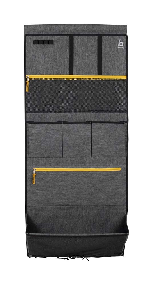 Het Bo-camp Industrial tentschort overton medium is een veelzijdige organizer, perfect voor in de tent of caravan. Het is gemaakt van de karakteristieke Cationic stof met een stijlvol patroon en verwerkte stiksels. De organizer heeft 1 extra ruim vak, 2 grote vakken met rits en 3 medium vakken. Het extra ruime vak heeft nog een extra opbergruimte doormiddel van het net dat ervoor zit. Bovendien heeft het tentschort 2 elastieken aan de bovenkant voor bijvoorbeeld een krant en een pennenhouder.