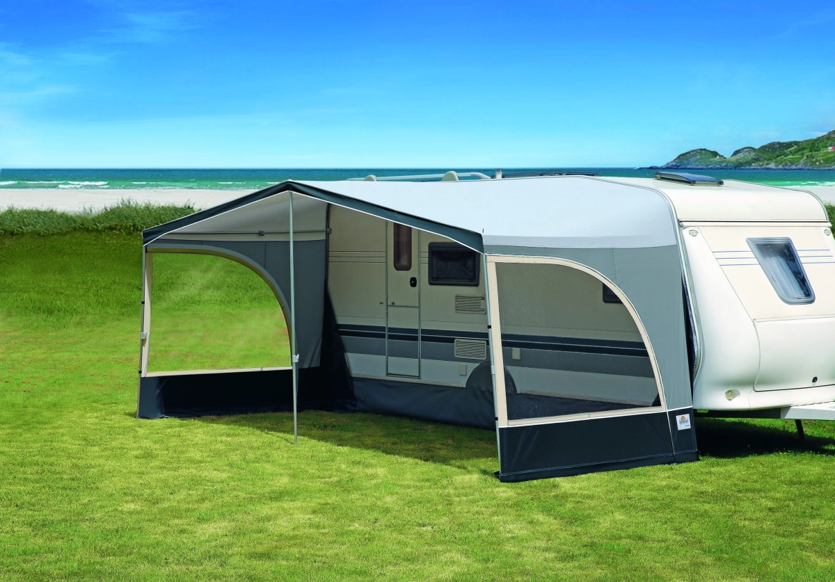 Kwaliteitsluifel met uitritsbare zijwanden! Nieuw kleurstelling Steel/Champagne en voorzien van getint raamfolie met zonwerend effect. Een echte kwaliteitsluifel, die geheel is vervaardigd van Ten Cate All Season tentdoek. Ten Cate All Season tentdoek is een ijzersterk lichtgewicht synthetisch materiaal dat 100% waterdicht is en dat een zeer lange levensduur heeft. Beide boogvormige zijpanelen zijn uitritsbaar. Het lichtgewicht frame in combinatie met het TC-touring tentdoek zorgen gegarandeert voor een minimaal gewicht.