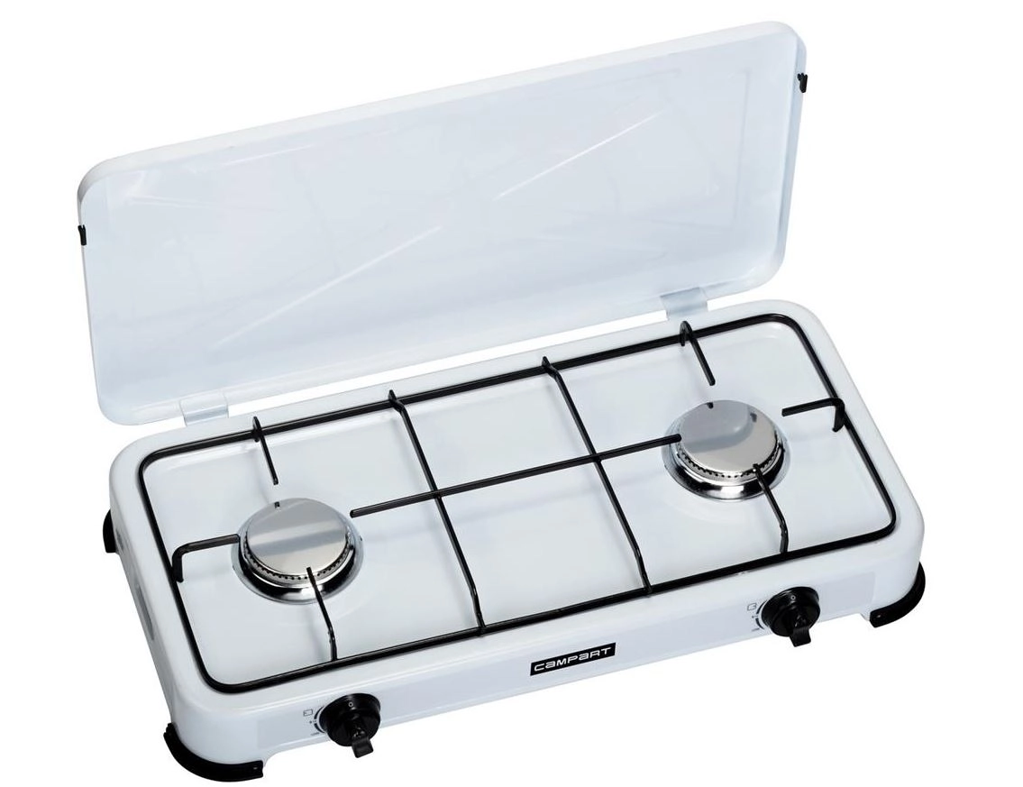Zelfs op vakantie kun je nu een heerlijke maaltijd bereiden dit gaskomfoor.Met 2 RVS branders maak je elke gewenste maaltijd. Dit basis kooktoestel heeft een handige branderdeksel die ook dienst doet als windscherm. Door het deksel te sluiten , kun je het gaskomfoor compact opbergen. De 2 branders hebben een gemeenschappelijk vermogen van 3000 Watt, twee branders van 1500 Watt per stuk.