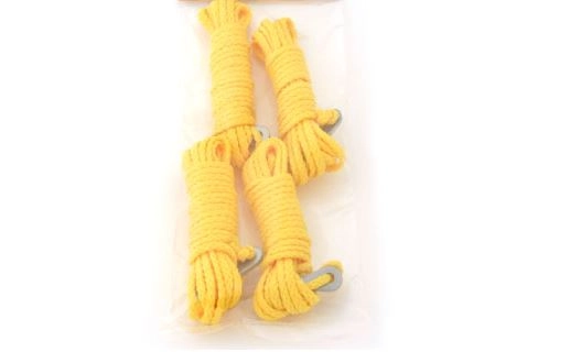 Deze Camping scheerlijnset is gemaakt van geel reflecterend Nylon. Door het gebruik van deze scheerlijnenset blijft uw voortent mooi strak afgespannen en de fel gele reflecterende kleur verkleint de kans op struikelen over de scheerlijnen. De stevige 4 meter lange scheerlijnen met een doorsnede van 3 mm en zijn voorzien van 2-gats kunststof spanners.
