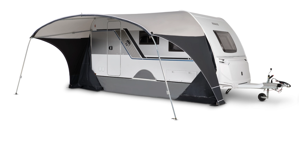 De Dorema Porto is een functionele caravanluifel, maar door de boogvorm heeft de luifel ook een sportieve en stijlvolle uitstraling. De luifel heeft een diepte van 240 cm en bij gebruik van de voorwand zelfs een vloerdiepte van 300 cm. De luifel beschikt over afneembare slikranden en wordt standaard geleverd met een 28 mm EasyGrip staal frame (voorzien van 5 dakstangen). De Dorema Porto luifel heeft mogelijkheden om de luifel af te sluiten voor meer privacy of bescherming tegen de zon met de optionele voorwand en/of sunwings.