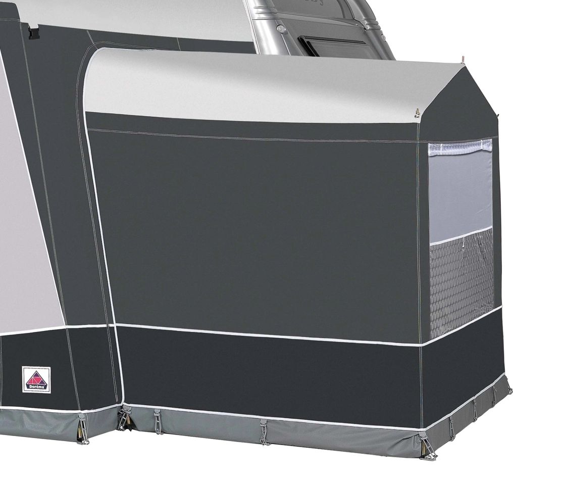 Met de Dorema uitbouw kan de voortent van uw nieuwe Doréma President 250, XL280 De Luxe of XL300 worden vergroot met een extra vloeroppervlakte van 215 x 130 cm. Dit is een waardevolle uitbreiding die ook geschikt is voor de Dorema Royal 350 De Luxe. De uitbouw behoudt de hoogte van de voortent tot aan de achterzijde en heeft aan de achterwand een raam met ventilatiegaas dat kan worden afgesloten met een transparante folieklep.