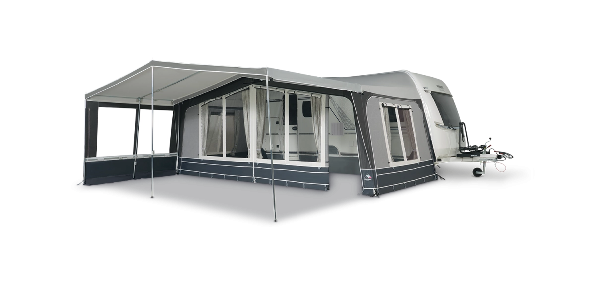 Met de Diamond Season biedt Doréma een stevige voortentluifel die zeer geschikt is voor seizoensmatig gebruik. De luxe voortentluifel past volledig bij de nieuwe Doréma Diamond voortenten en heeft een extra stevig Ten Cate All Season dakdoek met fraai dessign. De uitritsbare en meegeleverde zijwanden zijn gemaakt van het ademende acryl van Sattler en zijn voorzien van grote raampartijen, zodat je altijd van de omgeving kunt blijven genieten. De zijwanden hebben beide een losse slikrand met klittenband en dienen afgespannen te worden met de meegeleverde scheerlijnen en haringen.