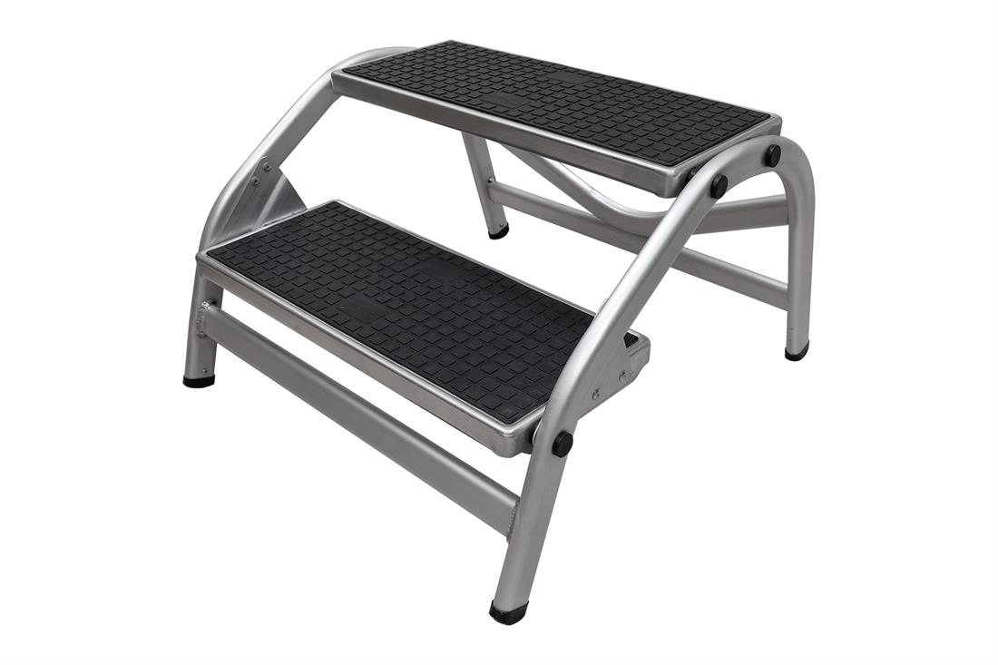 Deze aluminium opstap maakt het door de brede treden extra comfortabel om in en uit uw caravan te stappen. De brede treden zijn bedekt met rubberen matten waar een reliëf in verwerkt is. Hiermee voorkomt u dat u uitglijdt op het opstapje.