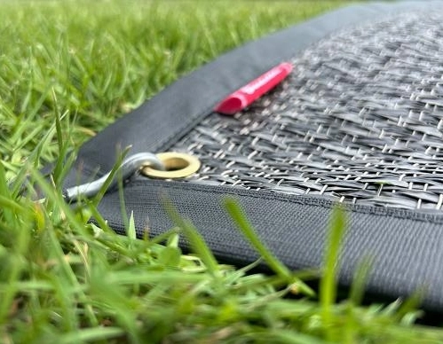 Het Isabella tapijt is de ideale ondergrond voor onder je caravanluifel. Dankzij de stevige randafwerking en ringen in elke hoek blijft het tapijt netjes op zijn plek, zelfs bij winderig weer. Het geweven nylon/pvc laat zand gemakkelijk door, is licht van gewicht en compact op te vouwen. Daarnaast is het tapijt waterbestendig, slijtvast en vlamvertragend – perfect voor intensief gebruik op de camping.