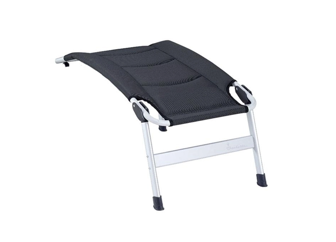 De voetsteun van Isabella voor op de kampeerstoelen Thor of Odin. In één beweging zet u het frame van de voetsteun vast op de dwarsstang van de stoel onder de zitting.