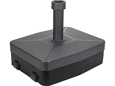 De parasol in de tuin van de buren of continu opstaan om hem vast te houden is verleden tijd met deze vulbare parasolvoet. De parasolvoet kan namelijk tot 40 kg gevuld worden, waardoor ook grotere parasols stabiel blijven staan bij wind. De voet is geschikt voor parasols met een buisdiameter van 21 tot 54 mm. Daarnaast is de voet uitgerust met twee wieltjes en kunt u de parasols dus rijdend verplaatsen in plaats van slepen of tillen.