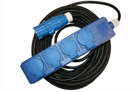 Deze stekkercentrale van HABA is uitgevoerd met een CEE stekker, 20 meter neopreen snoer en een stekkercentrale met 4 Shuko wandcontactdozen.
