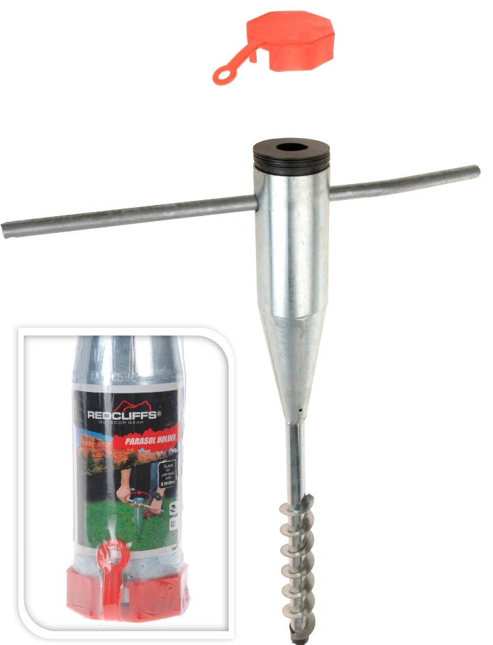Met deze Redcliffs metalen parasolhouder staat uw parasol stevig vast in de grond. De parasolhouder kan zowel in zachte als in harde grond geboord worden. Door middel van de 5 meegeleverde adapters zijn de volgende buisdiameters geschikt: Ø55mm, Ø50mm, Ø42mm, Ø28mm en Ø25mm.