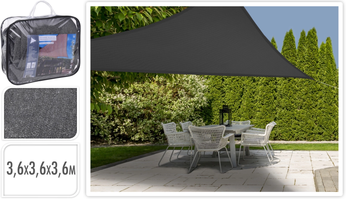 Met dit schaduwdoek creëert u eenvoudig en snel een schaduwplek in uw tuin of op uw kampeerplek. Dit lichtgewichte schaduwdoek houdt de warmte goed tegen en kunt u eenvoudig bevestigen aan een schutting of paal. Daarnaast kan het doek ook een regenbuitje verdragen.