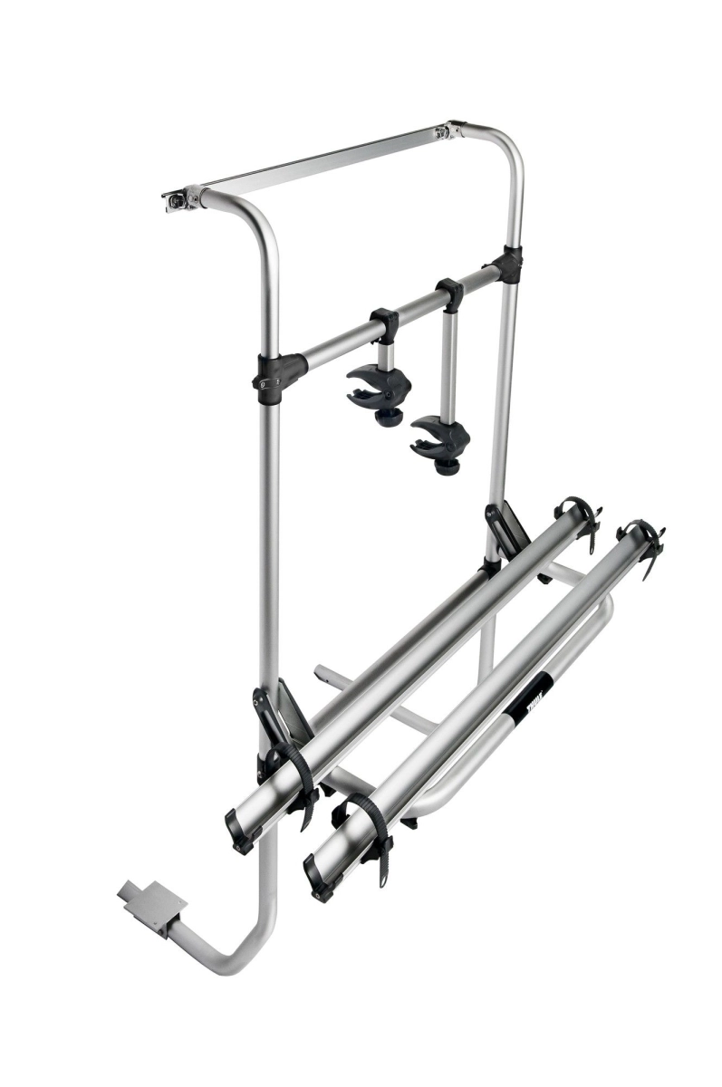 De Thule Sport G2 Universal is een fietsendrager voor montage op de achterwand, met bevestiging onderaan de bodem van de caravan. Eenvoudige bevestiging bovenaan aan bepaalde caravanrails (systeem mounting rail).