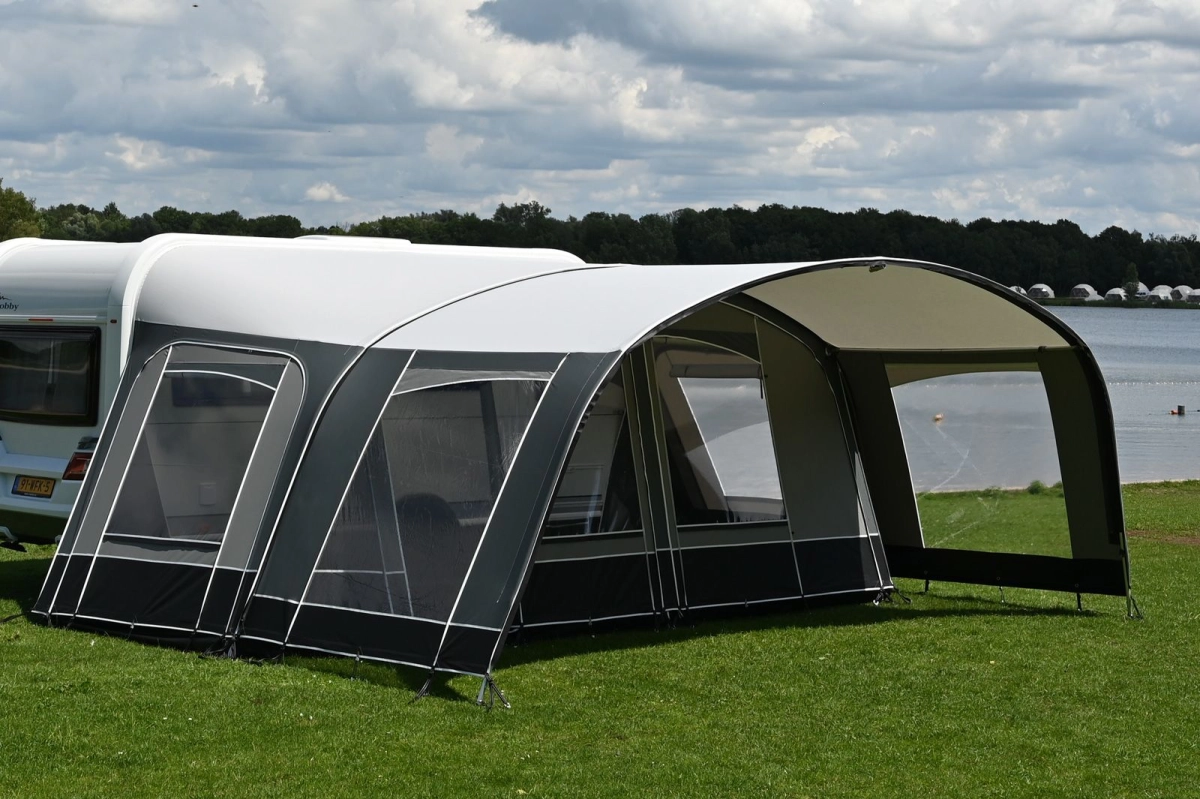 De Unico dakluifel Deluxe biedt een royale diepte van 220 cm en heeft vaste zijwanden met grote ramen. In tegenstelling tot de reguliere dakluifel zijn de zijwanden voorzien van afneembare slikranden. Deze extra functies zorgen voor meer comfort en bescherming. De ronde vorm van de dakluifel verbetert de afwatering. Dankzij de sterke boogstokconstructie hoef je de meegeleverde middenstaander meestal niet te gebruiken. Hierdoor geniet je van een ruime overspanning zonder hinder van een middenstaander. Bevestigen van de dakluifel Deluxe is eenvoudig dankzij een stevige spiraalritssluiting. Deze luifel is beschikbaar voor de Unico Bologna, Unico Milaan, Unico Turijn en Unico Rimini 320. Voor de Rimini 320 wordt de luifel geleverd in een extra zware doekkwaliteit en voorzien van blinderingskleppen aan de buitenzijde. Ook de Deeltent 500 kan uitgebreid worden met deze luxe dakluifel. De dakluifels zijn vervaardigd van Ten Cate All Season tentdoek, dat bekend staat om zijn sterkte, lichte gewicht en vormvastheid. Samen met de verstelbare aluminium boogstokconstructie en duurzame afspansjorbanden kun je de luifel en tent strak afspannen. Dit ontwerp maakt het eenvoudig om in te spelen op een ongelijke ondergrond, waardoor je altijd een stabiele en comfortabele opstelling hebt.