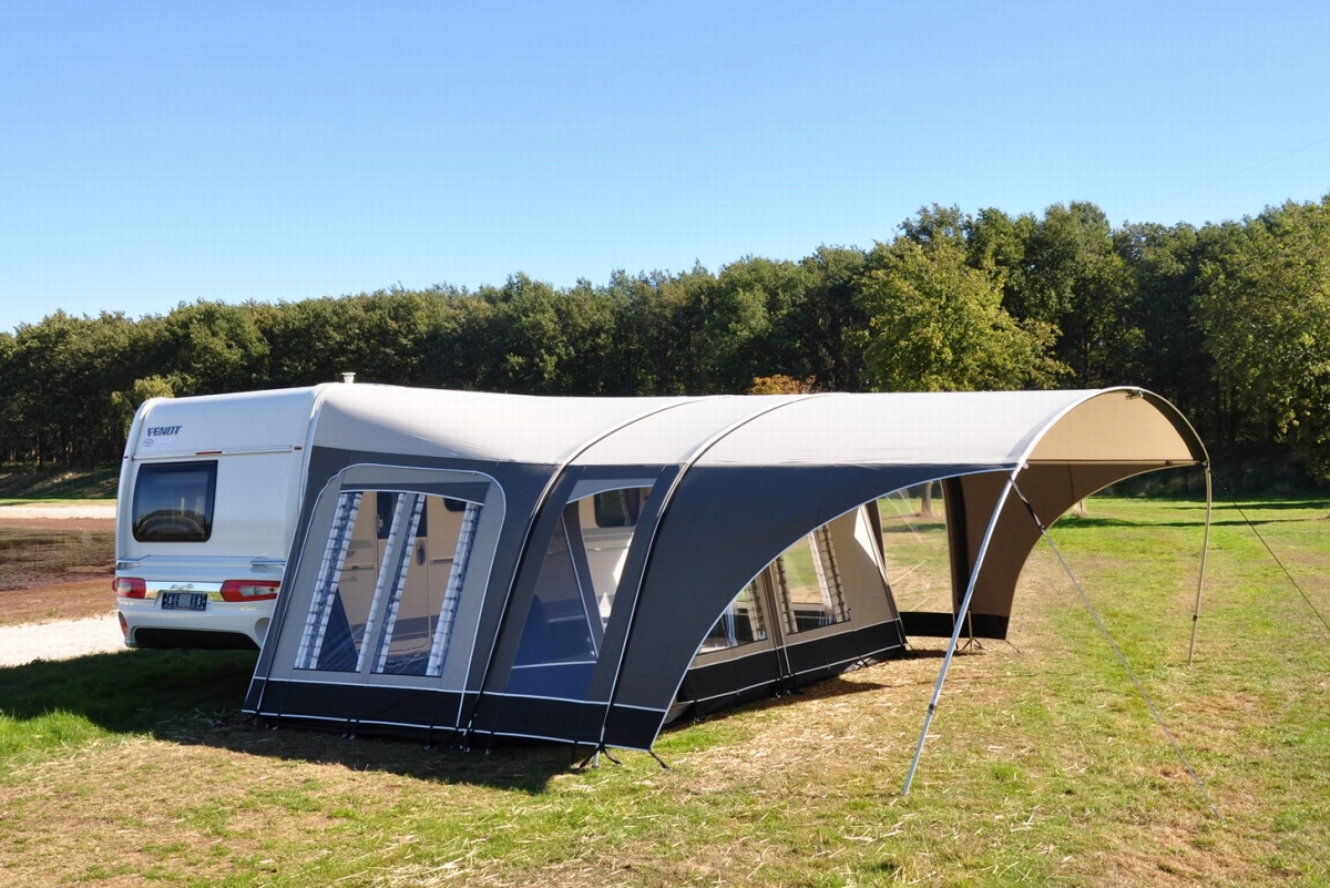 Een optionele dakluifel voorkomt daarnaast inregenen en zorgt er voor dat je optimaal gebruik kunt maken van de ventilatiemogelijkheden in de voortent, zelfs tijdens regenachtige dagen. Veel voortenten en caravanluifels van Unico zijn achteraf uit te breiden met een optionele dakluifel. Deze dakluifel is eenvoudig en snel te bevestigen door middel van een stevige spiraalritssluiting. Aan iedere geschikte voortent of caravanluifel wordt deze rits geplaatst. Zo kun je de dakluifel altijd achteraf aanschaffen en gebruiken zonder dat er aanpassingen aan de voortent of caravanluifel noodzakelijk zijn, wat het proces moeiteloos maakt. De dakluifels zijn vervaardigd uit hetzelfde robuuste Ten Cate All Season tentdoek dat ook in de voortenten van Unico wordt gebruikt. Dit materiaal staat bekend om zijn enorme sterkte, lichte gewicht en vormvastheid. Samen met de stevige, verstelbare aluminium boogstokconstructie en duurzame afspansjorbanden, kunnen zowel de tent als de dakluifel altijd strak worden afgesteld. Dit ontwerp maakt het bovendien mogelijk om optimaal te anticiperen op een ongelijke ondergrond, wat handig is op diverse kampeerlocaties. De ronde vorm van de dakluifel draagt bij aan een uitstekende afwatering, zodat regenwater efficiënt wordt afgevoerd. Dankzij de sterke boogstokconstructie is het vaak mogelijk om de meegeleverde middenstaander niet te plaatsen. Dit resulteert in een ruime overspanning zonder hinder van een grote middenstaander, zodat je optimaal kunt genieten van je ruimte onder de luifel! Afhankelijk van het model wordt de Unico dakluifel geleverd met één of drie dakliggers.
