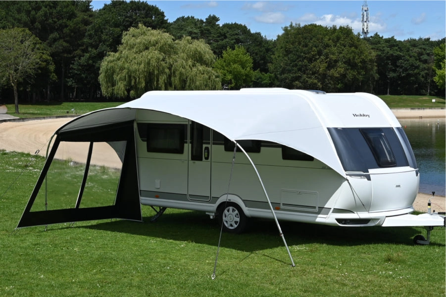 Voor Unico voortenten is de zijluifel zowel links als rechts te gebruiken, waardoor je altijd beschut zit, ongeacht de windrichting. Voor Torino bezitters is er keuze uit een linkse en rechtse versie, afhankelijk van de locatie van de zijwand ten opzichte van de caravan.