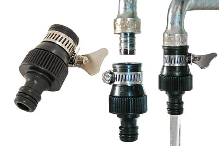 Universele waterkraan adapter met snelkoppeling. Bedoelt om op kranen zonder schroefuitloop een gardena koppeling te monteren