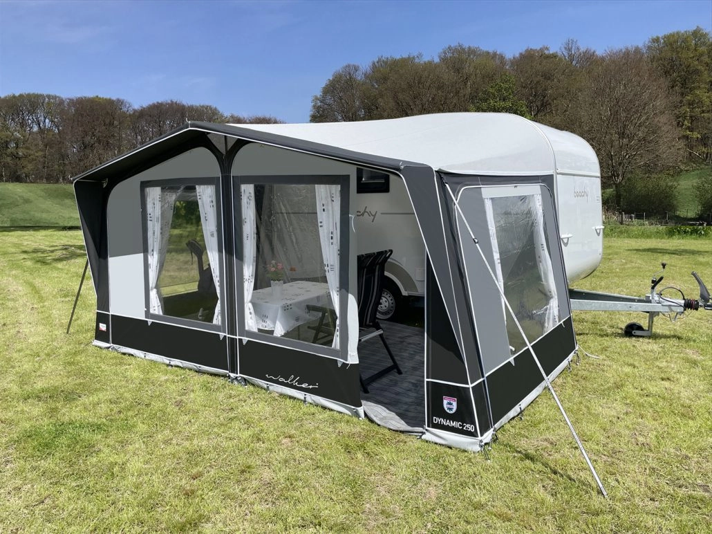 De kleurstelling van de Dynamic voor Beachy in combinatie met zijn strakke vormgeving zorgt voor een sfeervol concept waarmee u als veeleisende kampeerder gezien wordt op de camping. Perfecte afwerking met afgedekte ritsen. Zowel het dak als wanden zijn vervaardigd van hoogwaardig Ten Cate eenzijdig gecoat doek. Het dak is voorzien van een printmotief. De Dynamic 250 is uitstekend geschikt als seizoenstent maar ook als trekkerstent. In het laatste geval kunt u dan bijvoorbeeld kiezen voor het glasfiber lichtgewicht frame. De Dynamic 250 heeft een diepte van 250 cm.